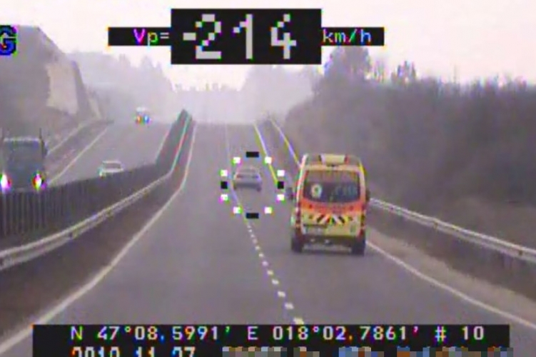 A Veszprém Megyei Rendőr-főkapitányság Forgalomellenőrző Alosztályának munkatársai 2019. november 27-én 11 óra 50 perckor a 8-as számú főút 35. kilométerszelvényében, Veszprém felől Várpalota irányába sebességellenőrzésük közben egy személyautót mértek be, ami az adott útszakaszon megengedett legnagyobb sebességet - 110 km/h - átlépve, 214 km/h-val közlekedett. Az 55 éves csobánkai sofőrt a rendőrök megállították a megkülönböztető jelzéssel szerelt, civil jellegű szolgálati gépkocsival, és közigazgatási bírságot szabtak ki vele szemben.