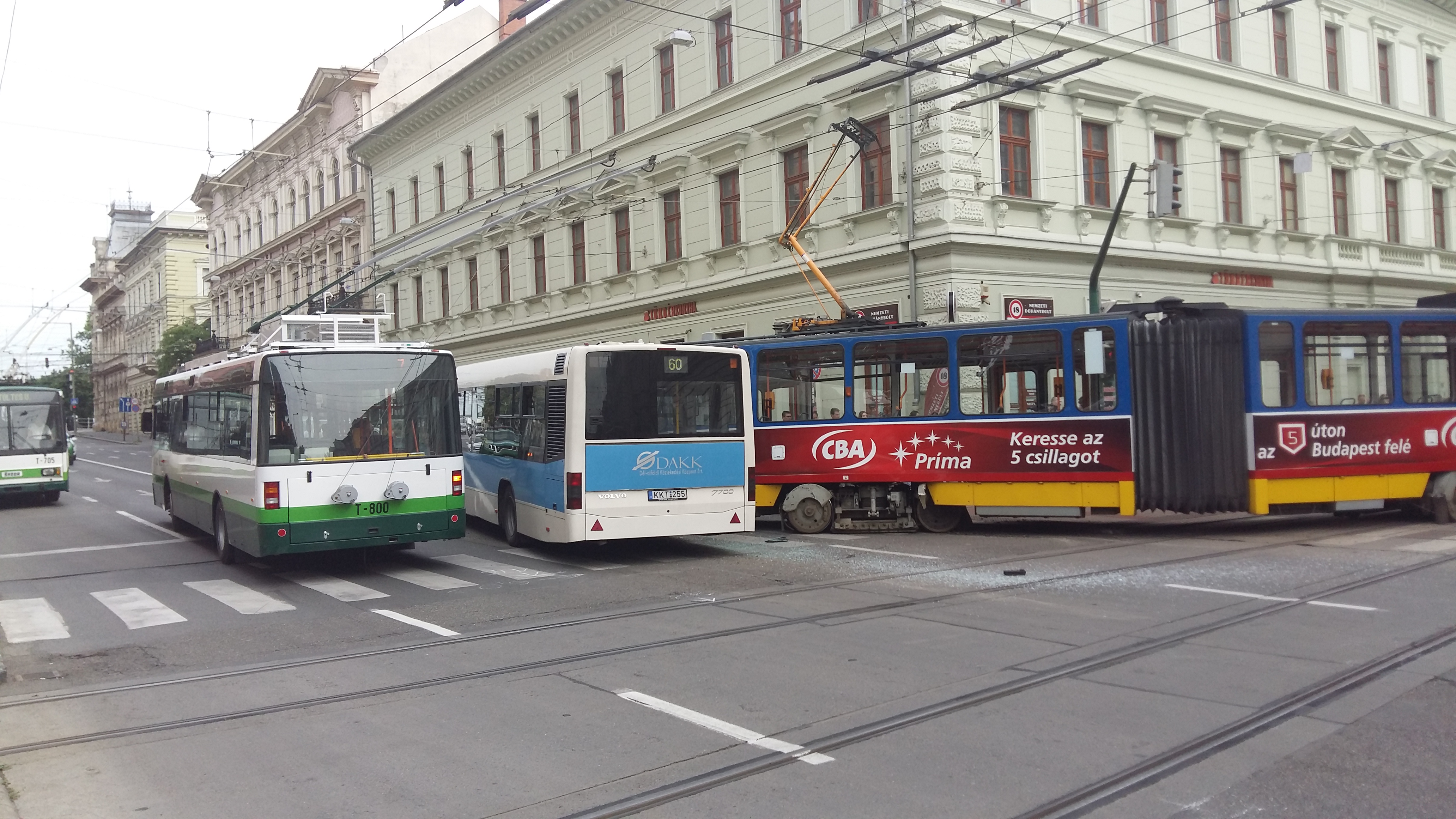 Továbbra is érdemes elkerülni Szeged belvárosát, ahol egy helyi járatos autóbusz és egy villamos ütközött. A Híd utca és a Kelemen utca kereszteződésében 2016. június 1-jén 15 óra 5 perckor bekövetkezett balesetben öten sérültek.