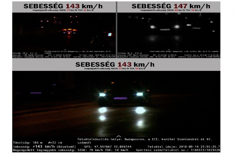 A főváros több kerületében tartottak közlekedésbiztonsági ellenőrzést 2018. szeptember 14-én 21 óra és 2018. szeptember 15-én 3 óra között. A rendőrök a helyszíneken 137 sebességtúllépést regisztráltak. Az ellenőrzés ideje alatt volt két autós, aki a megengedett 70 km/h helyett egyaránt 143 km/h sebességgel közlekedett.