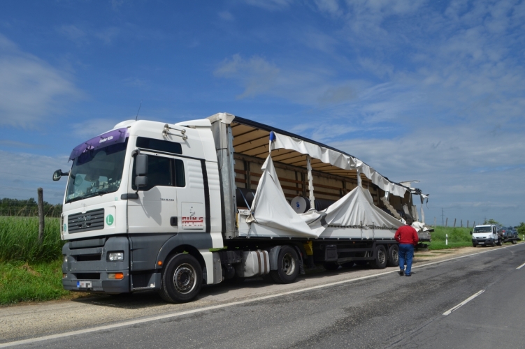 A szerb honosságú járműszerelvényt és annak vezetőjét az M5 autópályán ellenőrizték a dabasi autópálya rendőrök. Nem közlekedhetett tovább a megrongálódott pótkocsival.