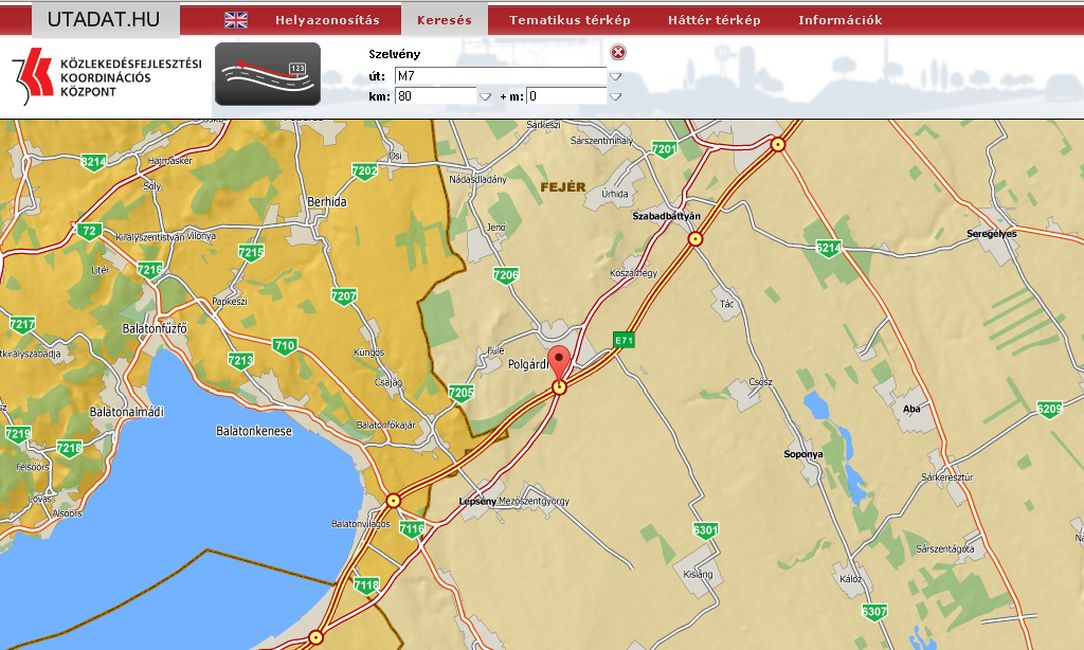Anyagi kárral járó közúti közlekedési baleset történt 2014. december 1-jén 11 óra 50 perckor az M7-es autópályán a 80-as kilométerszelvényben, a Polgárdi lehajtónál. Eddig tisztázatlan körülmények között egy személygépkocsi a bal pályatest külső sávjából az árokba hajtott. A baleset során személyi sérülés nem történt, de a sérült gépjármű törmelékei az úttesten szétszóródtak, ezért a helyszíni szemle és a műszaki mentés idejére a helyszínen félpályás útlezárás van érvényben.