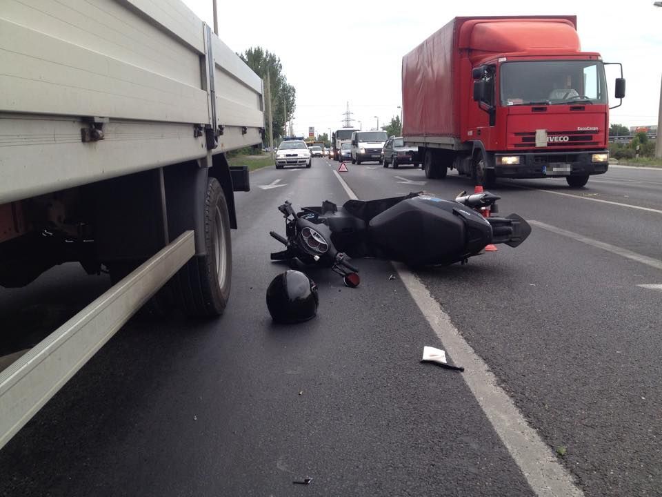 A rendőrök befejezték Győrben, a Királyszéki úton történt személyi sérüléssel járó közlekedési baleset helyszínelését. A helyszíni adatok alapján egy tehergépkocsi és egy motorkerékpár ütközött.