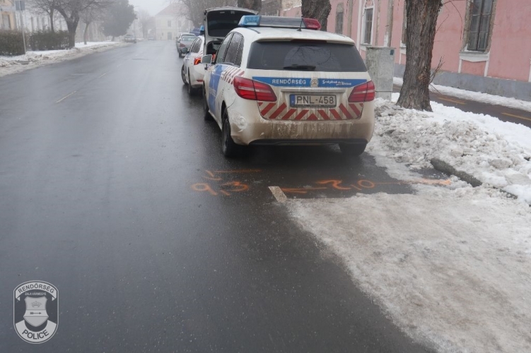Ezután egy rendőrautó is sorra került. A Deák Ferenc utca és a Georgikon út kereszteződésénél a lejegesedett úttesten megcsúszva, – a fékezés ellenére - ütközött a szolgálati járműnek egy sofőr.