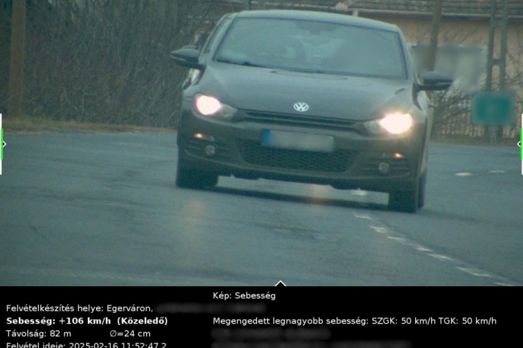 A Zalaegerszegi Rendőrkapitányság munkatársai 2025. február 16-án 11 óra 52 perckor Egervár belterületén mértek be egy járművezetőt, aki a megengedett 50 km/h helyett 106 km/h-val közlekedett. Az egyenruhások a gépjármű üzembentartója részére 210 ezer forint közigazgatási bírságot szabtak ki.