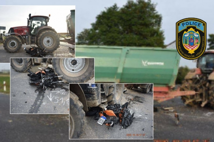 Egy mezőgazdasági munkagéppel közlekedett egy 19 éves szakcsi férfi 2020. október 03-án 15 óra 25 perckor a 61-es főúton. A dalmandi kereszteződésben besorolt a balra kanyarodó sávba, és megkezdte a kanyarodást. A traktoros azonban nem adott elsőbbséget a neki szemből, a főúton egyenesen haladó 27 éves motorosnak, és a két jármű összeütközött.