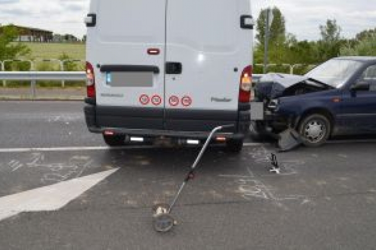 Egy Volkswagen típusú személyautó és egy Renault típusú teherautó ütközött össze 2014. május 30-án 11 órakor Eszetergnyénél.