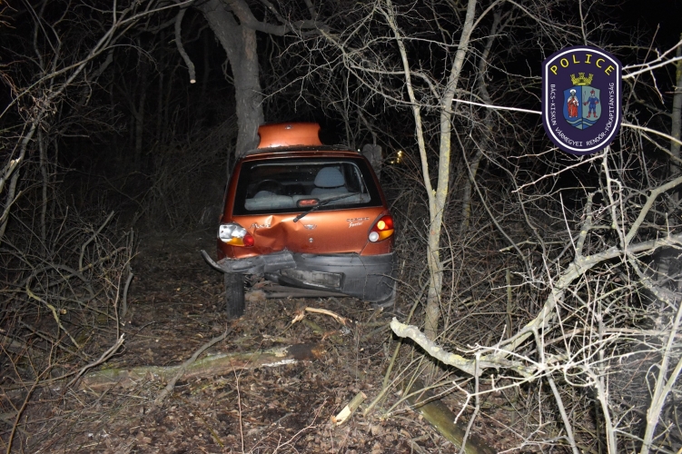 A vétlen sofőr elvesztette uralmát a kocsi felett, lesodródott az útról, majd egy fának csapódott. Könnyebb sérüléseket szenvedett.