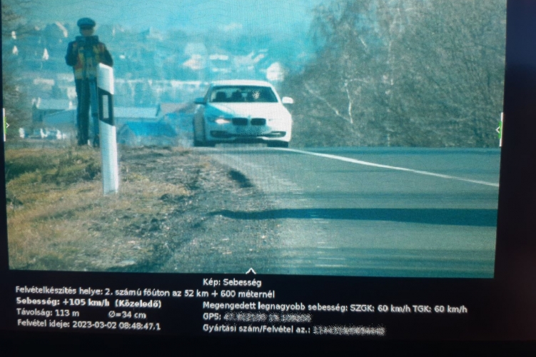 Mint arról korábban beszámoltunk, a 2-es számú főúton a diósjenői elágazó közelében balesetmegelőzési célzattal került kihelyezésre 2021. októberében egy életnagyságú rendőr sziluett tábla. Az érintett útszakaszon az egyenruhás rendőrt ábrázoló makett előtt egy 60 km/h sebesség korlátozó jelzőtábla inti lassabb haladásra az arra közlekedőket. Azonban sem a jelzőtábla által jelölt sebességhatár, sem a rendőrmakett nem tartotta vissza a sebesség túllépésétől azt a sofőrt, aki 2023. március 2-án reggel 8 óra 48 perckor arra közlekedett. Ám a meglepetés csak ekkor jött, ugyanis a sofőr az egyenruhás sziluett mellett elhaladva, nem messze attól, valódi rendőrökkel találta magát szemben, akik éppen sebességet mértek. A mérőműszer adatai szerint a jármű vezetője a megengedett 60 km/h sebességet túllépve 104 km/h-val közlekedett.