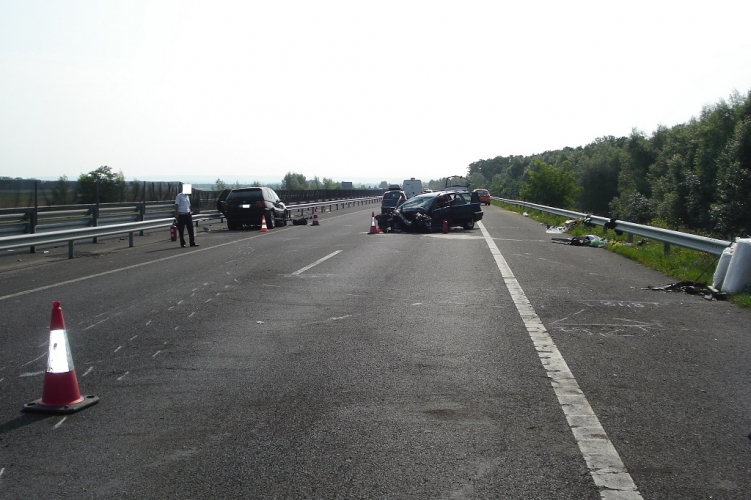 Ahogy arról korábban beszámoltunk, személyi sérüléssel járó közúti közlekedési baleset történt 2014. augusztus 3-án 6 óra 54 perc körüli időben az M7-es autópálya Budapest felé vezető oldalán a 156-os kilométerszelvényben. A rendelkezésre álló adatok alapján egy személygépjármű szalagkorlátnak ütközött, majd többször megpördült. A jármű futóműve leszakadt, mely az útfelszínre került és a mögötte érkező másik autó azt kikerülni már nem tudta, nekiütközött.