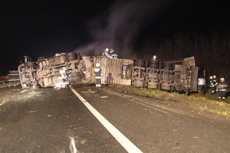 Ahogy azt korábban közöltük, anyagi káros közúti közlekedési baleset történt 2014. december 18-án 1óra 27 perc körüli időben az M7-es autópálya Nagykanizsa felé vezető oldalán a 161-162-es kilométer szelvények közötti szakaszon. A rendelkezésre álló elsődleges információk alapján – eddig tisztázatlan körülmények között – egy élőállat szállító kamion vezetője elvesztette uralmát járműve felett és felborult. A kamionban szállított 32 darab szarvasmarha közül néhány a helyszínen elpusztult. A jármű vezetője nem sérült meg.