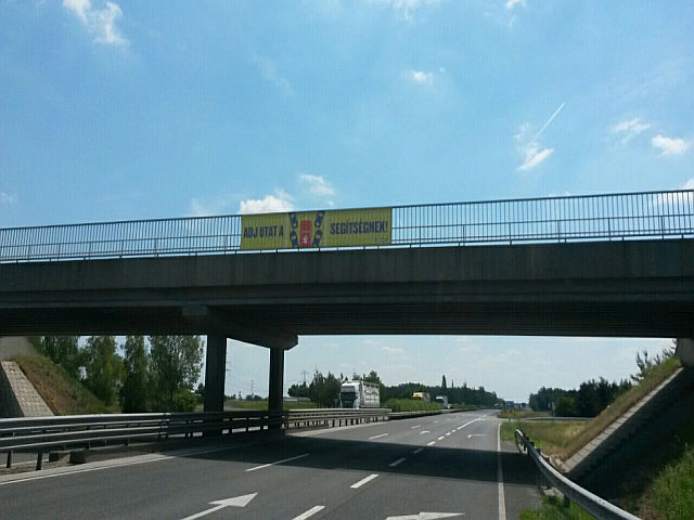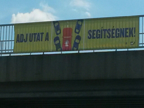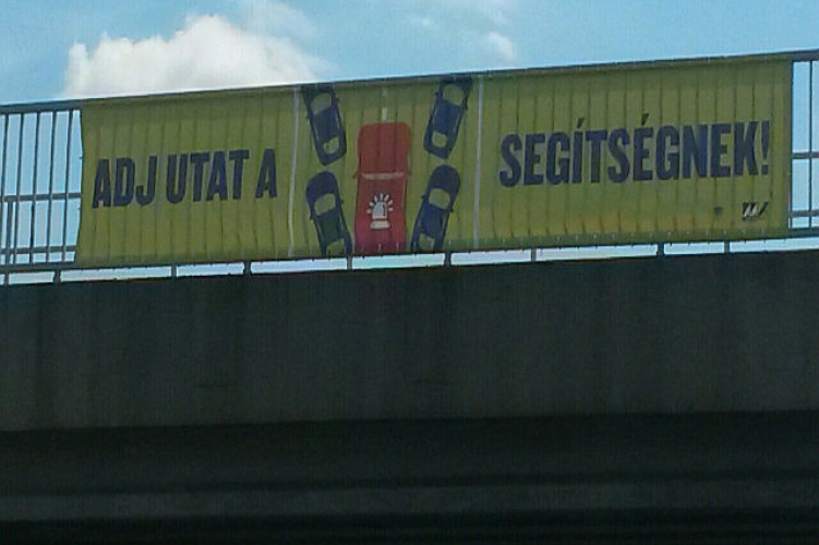 Baleset miatt bekövetkező torlódások esetén a „vészsáv” betartására vonatkozó figyelemfelhívó molinókat helyeztek ki az M1-es autópálya Győr-Moson-Sopron megyei szakaszának több pontján.