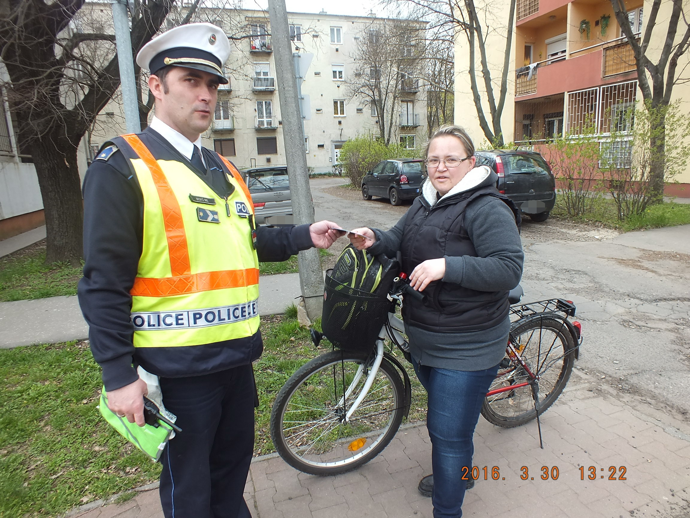 A Szolnoki Rendőrkapitányság munkatársai 2016. március 30-án 12 óra és 15 óra közötti időben Szolnok város belterületén, a Mester és a Városmajor utakon ellenőrizték a gyalogosan és kerékpárral közlekedőket. A rendőrök a szabálykövetőknek láthatósági mellényeket és kerékpáros korongokat adtak át. Felhívták a figyelmet a balesetek megelőzésének lehetőségéire, kiemelten a láthatóság fontosságára.