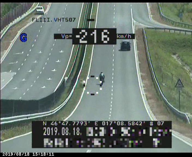 Jelentősen túllépte a sebességhatárt az a motorkerékpáros, aki a 760-as számú főútvonalon Felsőpáhok térségében közlekedett a megengedett 90 km/h sebesség helyett 216 km/h sebességgel, veszélyeztetve magát és a közlekedésben résztvevő többi járművezető testi épségét is. A motoros részére a legmagasabb összegű, 300.000 forintos közigazgatási bírságot szabták ki a rendőrök.