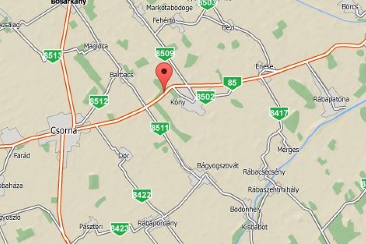 Meghibásodott egy nyerges vontató 2014. október 30-án 10 óra 30 perckor a 85-ös számú főút 19+300-as kilométerszelvényben Kóny községnél. A tehergépkocsi műszaki mentésének idejéig az érintett útszakaszon rendőri irányítás mellett, félpályán halad a forgalom.