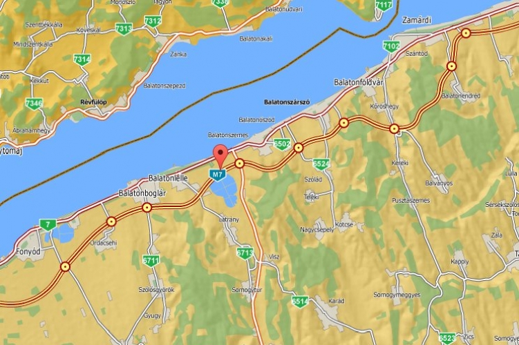 Anyagi káros közúti közlekedési baleset történt 2015. január 14-én 5 óra 40 perc körüli időben az M7-es autópálya Nagykanizsa felé vezető oldalán a 135+800-as kilométerszelvényben. A rendelkezésre álló adatok szerint – eddig tisztázatlan körülmények között - egy kamion szalagkorlátnak ütközött. A balesetben személyi sérülés nem történt, anyagi kár keletkezett. A helyszínelés idején a forgalom zavartalanul haladt, azonban a műszaki mentés idejére a balesettel érintett útszakaszt a rendőrség 8 óra 45 perctől lezárta, a forgalom félpályán halad.