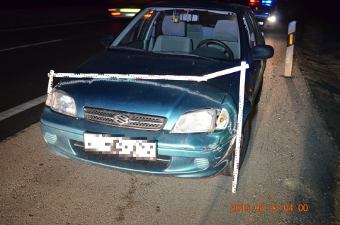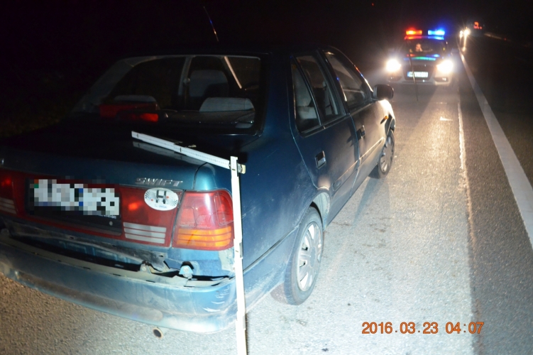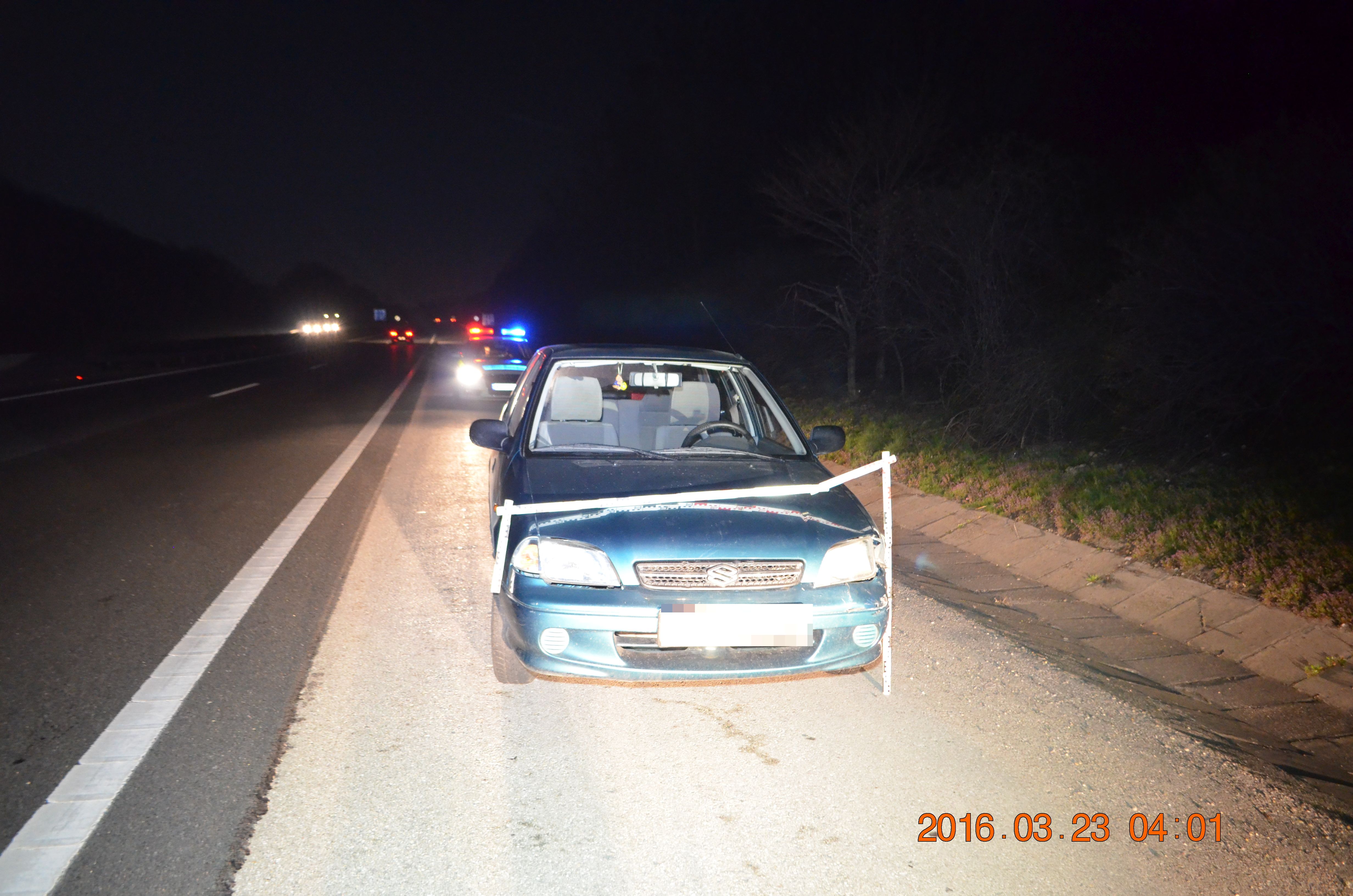 A járőrök a 46-os kilométerszelvényben az autó mellé érve, karjelzésekkel intettek megállásra a Suzuki vezetőjét.