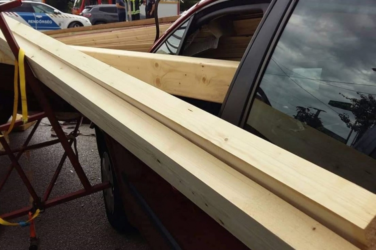 Óriási szerencséje volt annak a sofőrnek, akinek autójára deszkák és gerendák zúdultak Solymáron. A rakomány túl hosszú és túl súlyos is volt.