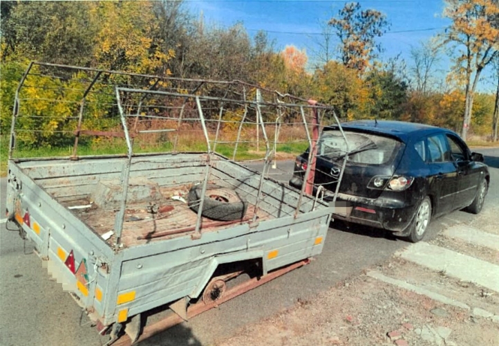 Nem mindennapi látvány fogadta a Készenléti Rendőrség járőreit október 24-én 13 óra körül Gyula külterületén. A rendőrség segélyhívó vonalára érkezett bejelentés arról, hogy egy autós Gyula és Szabadkígyós között olyan utánfutót húz, aminek hiányzik az egyik kereke. A rendőrök meg is találták a román rendszámú kocsit, és leállították. A vontatmányra a hiányzó jobb kerék helyett egy másfél méteres zártszelvénydarabot szereltek fel, így az nem gurult, hanem csúszott az úton. Az autót vezető férfi azt állította, hogy Szabadkígyósról indult és Gyulára szeretett volna eljutni, ahol megjavították volna az utánfutót. A készenléti rendőrök nem engedték tovább a balesetveszélyes járművet, amelyen egyébként az egyik hátsó lámpa törött volt, illetve a lámpák nem működtek. Elvették a jármű forgalmi engedélyét, és a férfi ellen szabálysértési feljelentést tettek a Gyulai Rendőrkapitányságon.