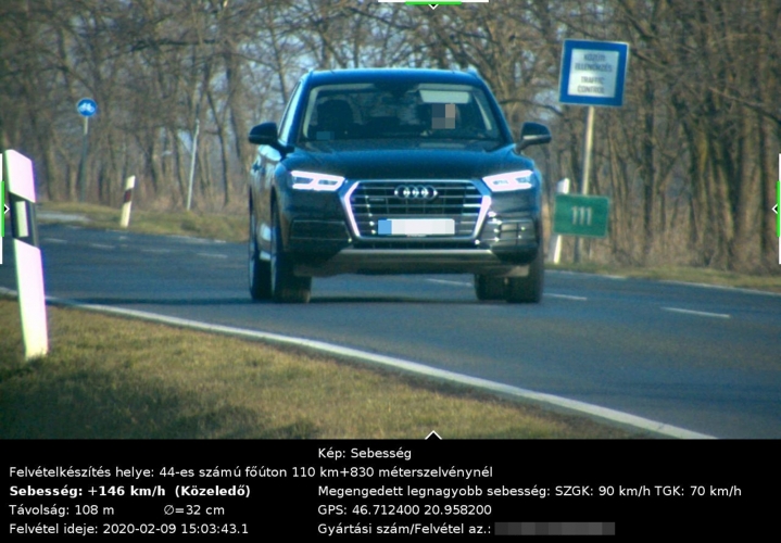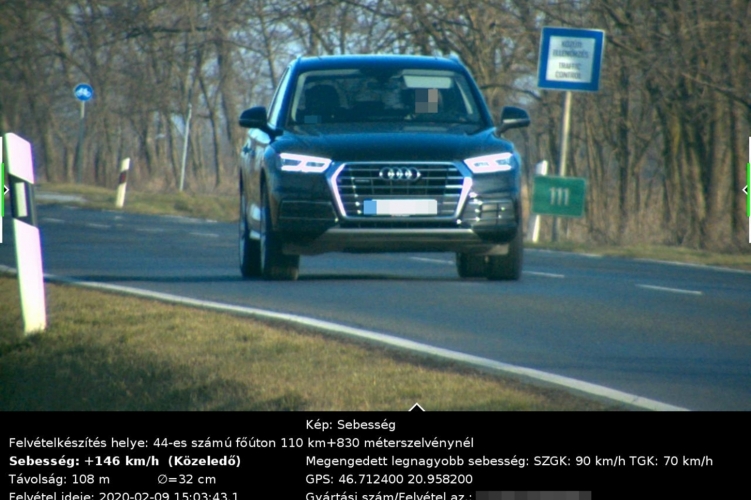A rendőrség a szabálytalankodók kiszűrése, a közlekedésbiztonság javítása érdekében folyamatosan ellenőrzi a sebességhatárok betartását. Több útszakaszon, köztük a 44-es számú főúton Békéscsaba és Kondoros között is mért a traffipax 2020. február 9-én. Ezen a napon nyolc óra alatt negyvenkettő szabálytalankodóról készült képfelvétel, közülük többen jelentősen túllépték a megengedett sebességhatárt. Volt olyan autós, aki a megengedett 90 helyett 146 km/órával hajtott.