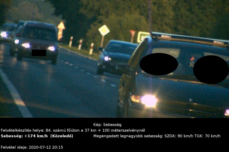 Egy autós 2020. július 16-án, a kora esti órákban Sümeg felől Sárvár irányába közlekedett a 84-es számú főúton, amikor haladása során a főút nemeskeresztúri szakaszán a megengedett 90 km/h helyett 174 km/h sebességgel előzte meg az előtte haladó kocsisort. A jármű üzemben tartójával szemben közigazgatási eljárást kezdeményeztek a rendőrök.
