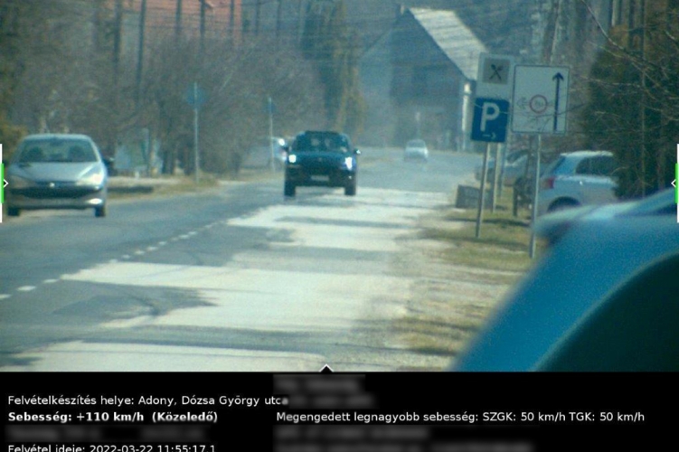 A közlekedési balesetek megelőzése érdekében folyamatosak az ellenőrzések a Fejér Megyei Rendőr-főkapitányság területén. A 2022. március 22-én végrehajtott akció elsősorban a gyorshajtók kiszűrésére irányult. Az ellenőrzés ideje alatt 15 olyan gépjárművezetővel szemben intézkedtek az egyenruhások, akik túllépték a megengedett sebességhatárt, közülük 10 sofőrrel szemben helyszíni bírságot, 5-tel szemben pedig közigazgatási bírságot szabtak ki a rendőrök. Volt olyan járművezető, aki Adony belterületén a megengedett 50 km/h helyett 110 km/h-val közlekedett.