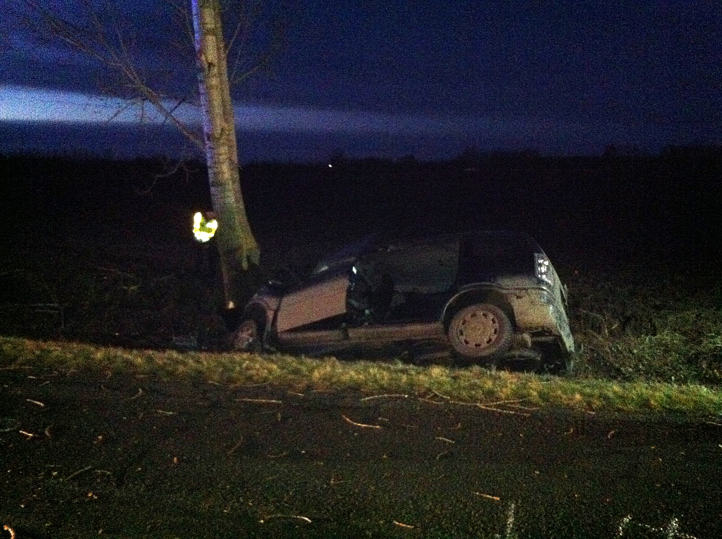 Haladása során a sofőr nem az út vonalvezetésének megfelelően választotta meg a járműve sebességét és az út 36.550-as méterénél lehajtott az útról és egy fának ütközött.