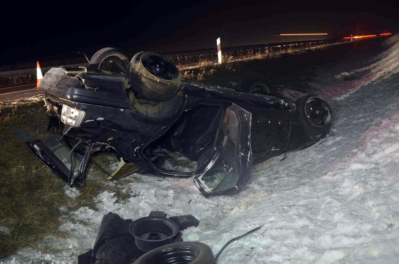A helyszíni szemle adatai szerint egy BMW típusú személygépkocsi közlekedett a belső forgalmi sávban Szeged irányába, amikor eddig tisztázatlan okból letért az útról, árokba hajtott és felborult. A baleset következtében a személyautót vezető 37 éves férfi a helyszínen életét vesztette, a gépjárműben utazó 36 éves, 34 éves és 8 éves utasai - akik használták a biztonsági övet - könnyű sérüléseket szenvedtek.