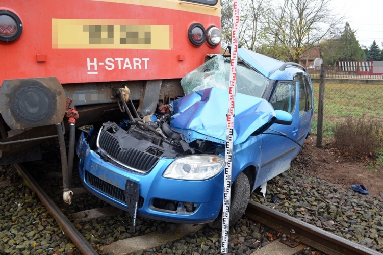 Személyvonat és autó ütközött össze, a balesetben egy 37 éves nő meghalt.