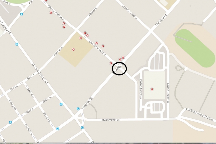 Halálos közúti közlekedési baleset történt 2015. október 1-jén 19 óra körüli időben Budapest XIV., Thököly út és Cházár András utca kereszteződésében. A Dózsa György út irányába közlekedő motorkerékpáros férfi egyelőre ismeretlen okból összeütközött egy szemből érkező személyautóval. A sérült motoros a kórházba szállítását követően életét vesztette.