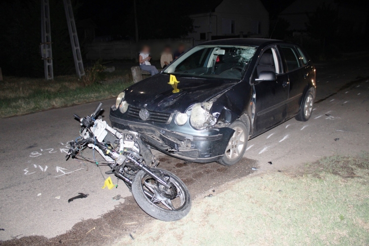 A Berettyóújfalui Rendőrkapitányság Közlekedésrendészeti Osztálya járművezetés ittas állapotban vétség és járművezetés az eltiltás hatálya alatt vétség elkövetésének megalapozott gyanúja miatt folytatott eljárást egy férfivel szemben. A nyomozás adatai szerint a gyanúsított egy rendszám nélküli motorral, bukósisak és jogosítvány nélkül közlekedett Hajdúbagos belterületén 2021. július 16-án 20 óra körül. A Dankó Pista utca - Nagy utca kereszteződésében összeütközött egy autóval és súlyos sérüléseket szenvedett.
