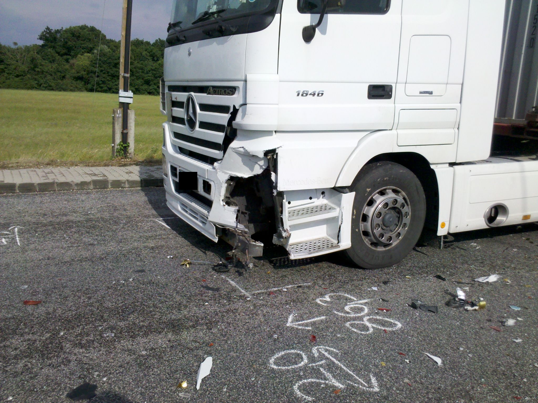A rendelkezésre álló adatok szerint 2015. május 26-án 15 óra 40 perckor egy szlovén honosságú nyerges vontató eddig még ismeretlen körülmények között ütközött neki egy vele azonos irányba haladó Renault típusú személygépkocsinak. Az autóban egy kozmadombjai család utazott, a szülők és a 9 éves kisfiúk – az elsődleges orvosi vélemény szerint – nyolc napon belül gyógyuló, könnyű sérüléseket szenvedtek; mind a három embert a zalaegerszegi kórházba vitték a mentők. A kamiont vezető macedón állampolgárságú sofőr nem sérült meg.