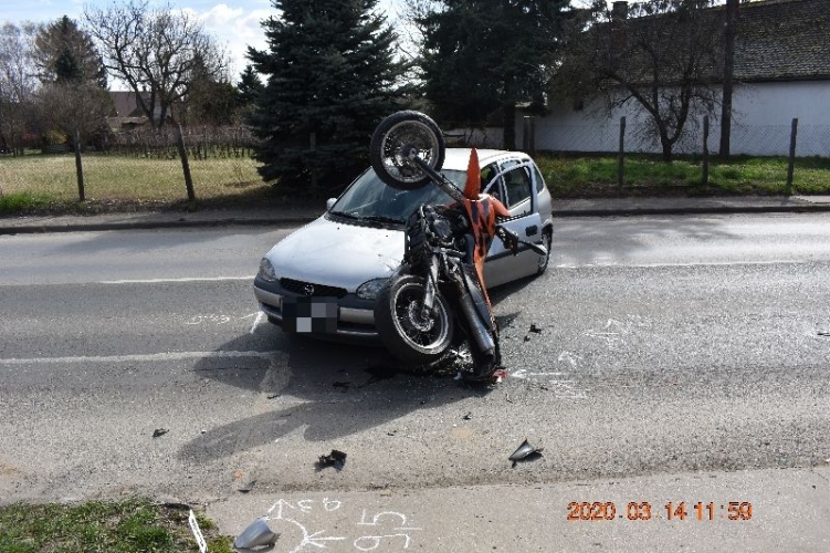 Egy Opel típusú személygépkocsival közlekedett 2020. március 14-én a délelőtti órákban a 61-es főúton – Dombóvár belterületén – egy 23 éves férfi, amikor balra kívánt kanyarodni, de azt megelőzően nem győződött meg arról, hogy járműve előzését egy motorkerékpáros megkezdte. A motor vezetője egy 42 éves férfi pedig nem volt elég körültekintő akkor, amikor a balra kanyarodó autó előzésébe kezdett, és a két jármű összeütközött. A balesetben a motoros az elsődleges adatok szerint könnyebben sérül meg.