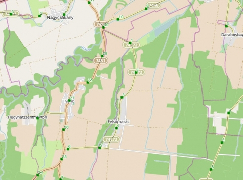- a 74172-es számú út 0+800 – 1+100 kilométerszelvény közötti szakaszán, Felsőmarác térségében.