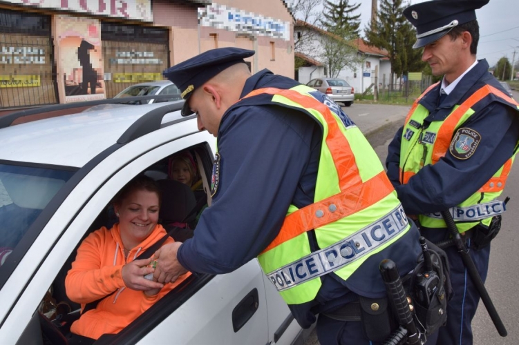 A megye rendőrei az ünnepi hosszú hétvége alatt a szabályosan közlekedő gépjárművezetőknek baleset-megelőzési tanácsokat tartalmazó szórólapot, csokoládé nyuszit és alkoholmentes sört adnak át.