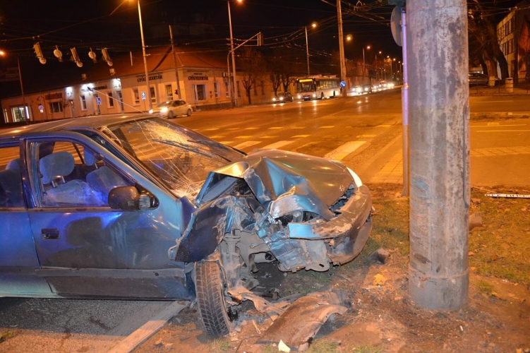Először egy szabályosan közlekedő autónak, majd egy villanyoszlopnak ütközött. A 37 éves férfi alkoholt fogyasztott mielőtt a volán mögé ült.