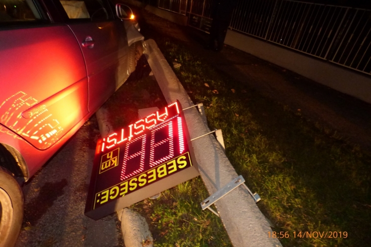 Ivott, majd kidöntötte a sebességkijelző táblát