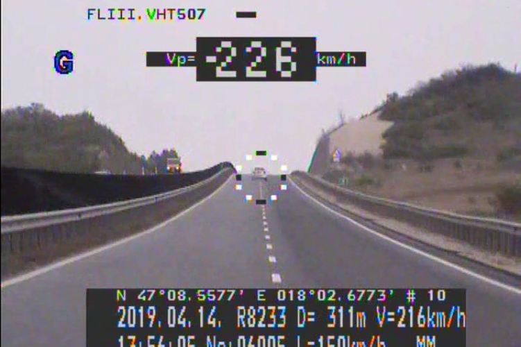 A Veszprém Megyei Rendőr-főkapitányság Forgalomellenőrző Alosztályának munkatársai 2019. április 14-én 14 órakor a 8-as számú főút 39. kilométerszelvényében, Veszprém felől Várpalota irányába sebességellenőrzésük közben egy személyautót mértek be, ami az adott útszakaszon megengedett legnagyobb sebességet - 110 km/h - átlépve, 226 km/h-val közlekedett. A 22 éves diósdi sofőrt megállították a megkülönböztető jelzéssel szerelt, civil jellegű szolgálati gépkocsival a rendőrök. Az igazoltatáskor a járőrök megállapították, hogy a férfi egyáltalán nem rendelkezik vezetői engedéllyel, továbbá az Érdi Rendőrkapitányság 2020. március 5-ig eltiltotta a járművezetéstől. A 22 éves autóvezetőt előállították a Veszprémi Rendőrkapitányságra, ahol járművezetés az eltiltás hatálya alatt szabálysértés elkövetése miatt őrizetbe vették, majd a Veszprém Megyei Rendőr-főkapitányság fogdájában helyezték el.