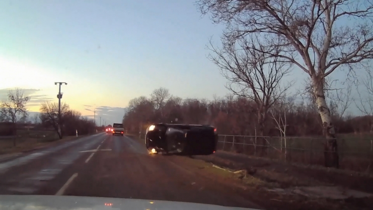 Békés vármegye, 470-es út Békéscsaba és Békés közötti szakasza, 2023. február 1. 6 óra 45 perc. Egy személygépkocsi előzés közben sodródni kezdett, felborult, megpördült, majd a kerekein állt meg. A jármű vezetője használta a biztonsági övet és könnyű sérülést szenvedett, a baleset után segítség nélkül ki tudott szállni a kocsiból. Mi történt volna, ha nincs bekötve?