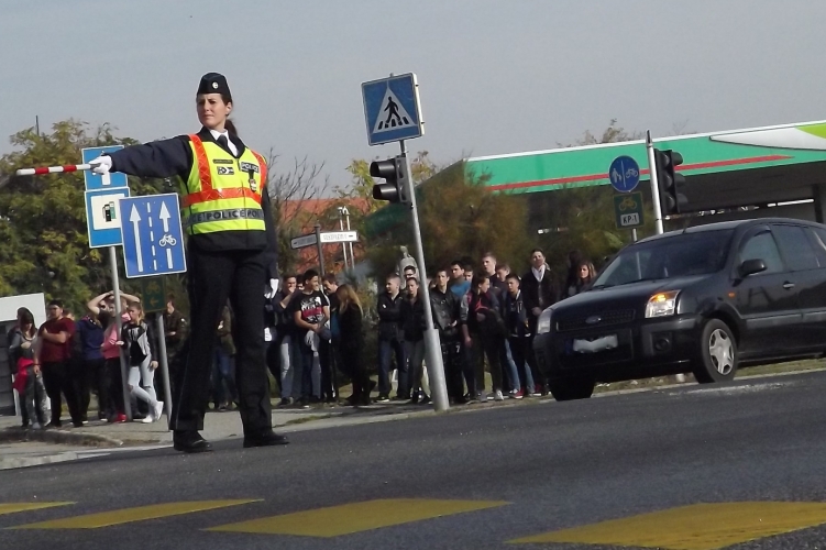 A gyalogosan közlekedők védelme, valamint a közlekedési szabályok előírásainak betartása érdekében Várpalotán, a Veszprémi úton karos forgalomirányításra is sor került.