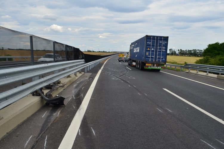 Mint ahogy arról korábban beszámoltunk, teljes útlezárás mellett helyszíneltek a járőrök egy, a 86-os számú főútvonal 83+50 kilométerszelvényénél történt közlekedési balesetnél 2014. július 2-án. A helyszíni szemle során megállapították, hogy egy szerb férfi tehergépkocsijával Szombathely felől Csorna irányába haladt, melynek során észlelte, hogy az előtte közlekedő személygépkocsi hirtelen fékezett. Az ütközés elkerülése érdekében balra, a belső forgalmi sáv irányába kormányozta járművét. A belső forgalmi sávban, a tehergépkocsi mellé érkező személyautó vezetője szintén balra kormányzott, de a hirtelen végrehajtott manőver következtében járművével a szalagkorlátnak ütközött, többször megpördült és végül a külső forgalmi sávban állt meg. A baleset következtében a személygépkocsi utasa az elsődleges orvosi vélemény szerint könnyebben sérült. A Szombathelyi Rendőrkapitányság szakértők bevonásával vizsgálja a baleset körülményeit.