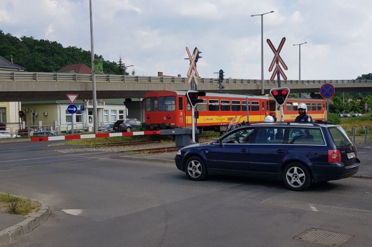 Központban a vasúti átjárón történő biztonságos áthaladás