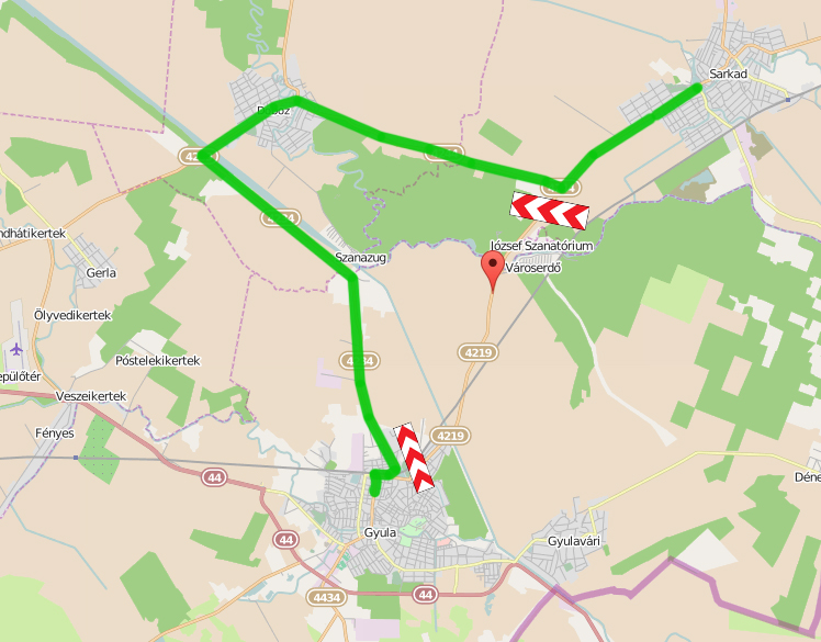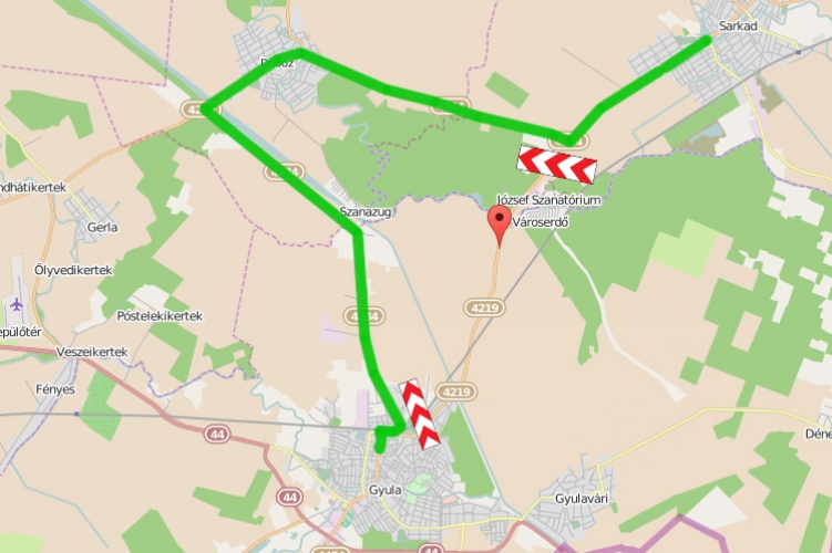 Súlyos közúti közlekedési baleset történt 2015. január 19-én 6 óra 50 perc körüli időben Gyula és Sarkad között a 4219-es számú főút 61-es kilométerszelvényében, ahol két személygépkocsi ütközött össze. Az elsődleges adatok szerint a balesetben ketten sérültek meg.
