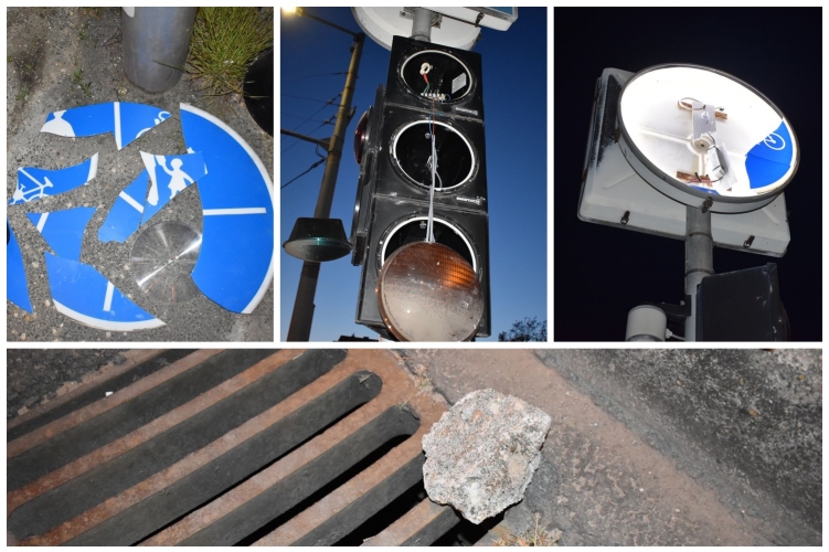 Bejelentés érkezett 2020. május 7-én a kecskeméti rendőrségre, miszerint a megyeszékhelyen, az Akadémiai körút és a Nyíri utca kereszteződésében egy férfi a közlekedési táblákat és a forgalomirányító fényjelző készülékeket kövekkel, betondarabokkal dobálja. A kórház egyik biztonsági őre rászólt a rongálóra, aki addigra már kitörte több lámpa lencséjét, letörte az esővédő burkolatokat, valamint egy kerékpárutat jelző táblát is szétvert. A forgalomirányító fényjelző berendezések annyira károsodtak, hogy sárga villogó jelzésre váltottak át. A férfi hozzávetőleg 126.000 forint kárt okozott.