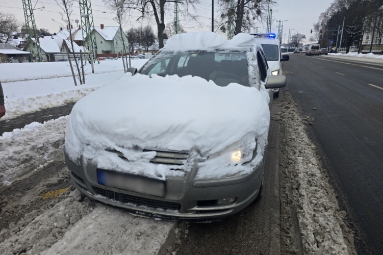 A Zala Vármegyei Rendőr-főkapitányság Kutyás Csoportjának munkatársai lettek figyelmesek január 7-én délelőtt egy személyautóra Zalaegerszegen, amit rengeteg hó borított. Látszott, hogy nem takarították le, mielőtt elindultak vele. Rendszáma is teljesen el volt takarva. A rendőrök helyszíni bírságot szabtak ki.