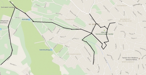 Budapest II. kerületében: Adyliget, Nagykovácsi út, Budakeszi út – Kuruclesi út.