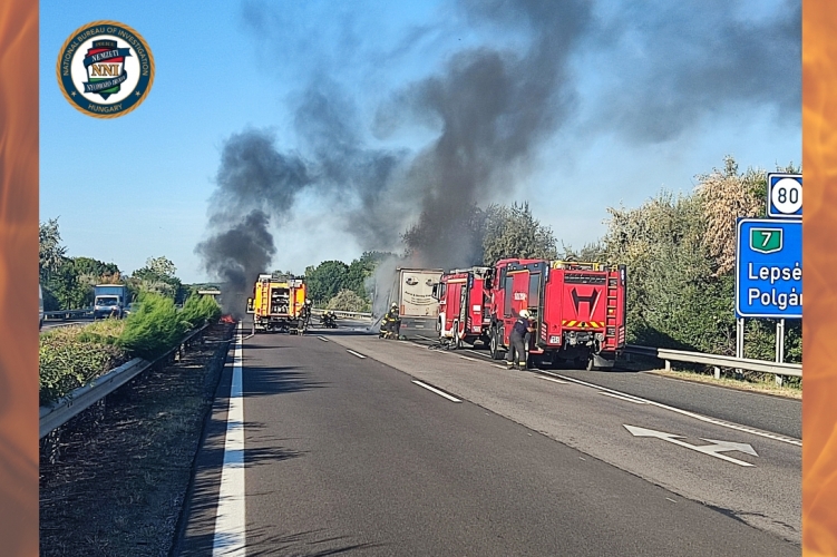 A Készenléti Rendőrség Nemzeti Nyomozó Iroda Műveleti Szolgálat Műveleti Főosztály Bevetést Támogató Osztály állománya vízi mentési gyakorlatra tartott szeptember 2-án Budapestről a Balatonhoz, amikor a sztrádán észrevettek egy füstölő kamiont. A jármű mellett egy férfi poroltóval próbálta megfékezni a tüzet, de a lángok terjedése miatt nem járt sikerrel. A rendőrök a személy- és vagyonbiztonság érdekében azonnal intézkedtek a forgalom lezárásáról, majd értesítették a tűzoltókat és a mentőket, miközben igyekeztek a lángok továbbterjedését megakadályozni. Személyi sérülés nem történt. A tüzet végül a székesfehérvári hivatásos és a polgárdi önkormányzati tűzoltók oltották el.