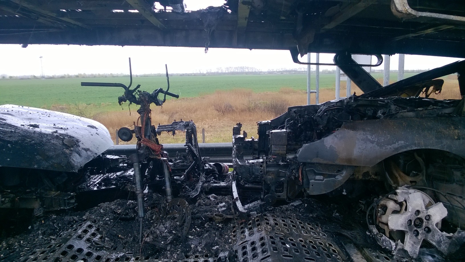 A forgalom újra zavartalanul haladhat az M3-as autópálya 151-es kilométerénél, ahol egy autókat és robogókat szállító kamion gyulladt ki.