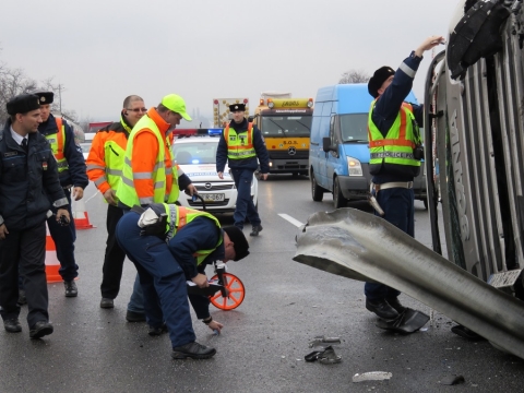 Egy tehergépjármű szakította át a szalagkorlátot a sztráda 34. kilométerszelvényében.