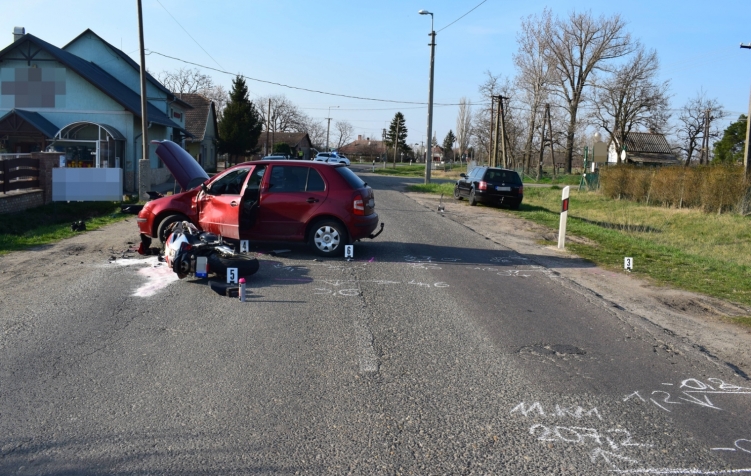 Súlyos sérüléssel járó közlekedési baleset történt 2020. március 20-án 14 óra 10 perckor Orosháza külterületén. Egy egyenes útszakaszon az úttest jobb szélén állt egy személygépkocsi, majd a jármű vezetője úgy indult el, hogy közben meg akart fordulni. Ekkor azonban összeütközött egy mögötte érkező motorossal. A motor vezetőjét súlyos sérüléssel vitték kórházba a mentők, a személygépkocsit vezető nő könnyebben megsérült. A nyomozás adatai szerint a baleset azért történt, mert a nő nem adott elsőbbséget a motorral közlekedő férfinak. Az Orosházi Rendőrkapitányság a nyomozás vizsgálati szakaszában a szükséges eljárási cselekményeket elvégezte és az ügy iratait 2020. december 8-án továbbította az ügyészségre.
