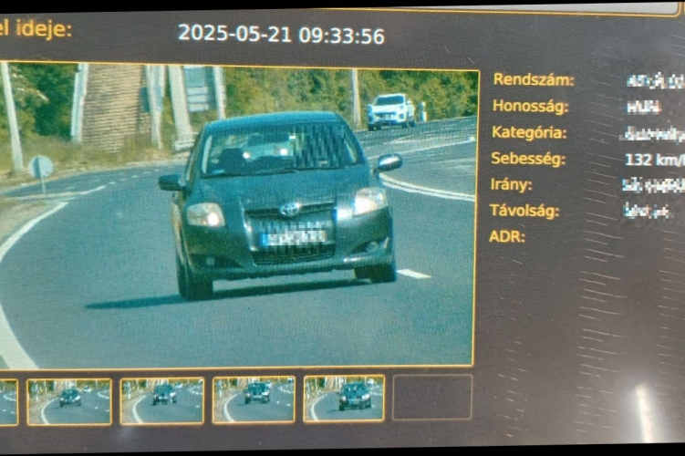 A rendőrök május 21-én délelőtt a 21-es főúton mértek be egy autót, a vezetője a megengedett 90 km/h-s sebesség helyett 132 km/h-val hajtott. Munkatársaink jelentős összegű közigazgatási bírságot és közúti közlekedési előéleti pontot állapítottak meg a járművezetőnek.